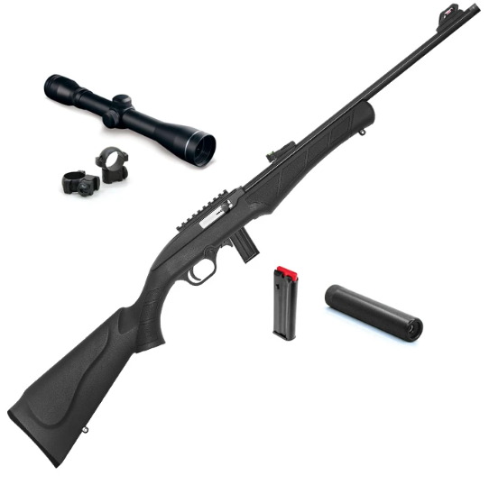 Calibre.22 Long RifleSistema de AcciónSemiautomático (Blowback)Capacidad del Cargador10 tiros (Cargador de caja metálico)Longitud del Cañón18 pulgadas (45.7 cm)Longitud Total91.4 cm (36")Peso (vacío)1.8 kg (4 lbs) - Uno de los más ligeros del mercadoMaterial del CañónAcero con 8 estrías a la derechaCulataPolímero negro (con textura antideslizante)MirasFibra óptica ajustable (alza verde, punto rojo) extrema Ligereza: Con solo 1.8 kg, es significativamente más liviano que el Ruger 10/22 o el Mendoza Puma, lo que lo hace perfecto para jornadas largas de caminata en el campo o para tiradores jóvenes.