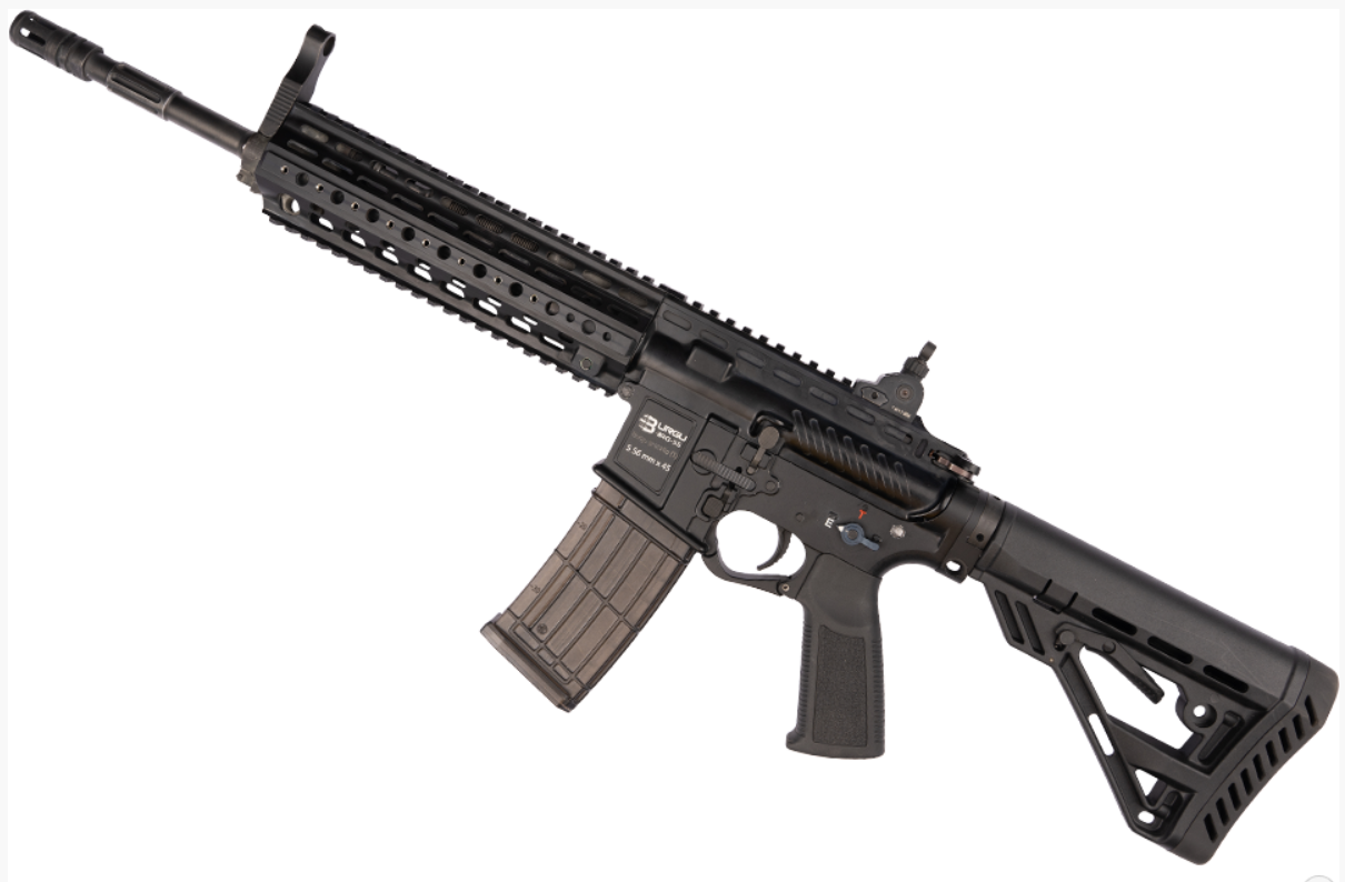 Ergonomía Moderna: Incluye un pistolete (empuñadura) ergonómico con texturizado antideslizante y un selector de tiro de fácil acceso, manteniendo la disposición clásica del AR-15.