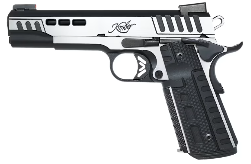 Calibres Disponibles9x19 mm, .45 ACP y 10mm AutoSistema de AcciónAcción Simple (SA)Capacidad de la Tolva9+1 (9mm) / 8+1 (.45 ACP) / 8+1 (10mm)Longitud del Cañón127 mm (5.0 pulgadas)Longitud Total221 mmPeso (vacía)1,077 gramos (38 oz)Material ArmazónAcero inoxidable con acabado KimPro II SilverMaterial CorrederaAcero inoxidable con cortes de alivio Cortes de Alivio en la Corredera: Presenta ventanas de ventilación laterales que reducen la masa de la corredera. Esto permite un ciclo de disparo más rápido y ayuda a disipar el calor del cañón.